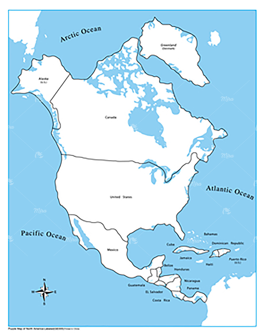 Bảng kiểm soát Bản đồ Bắc mỹ có chữ (Plastic) - Tiếng Anh