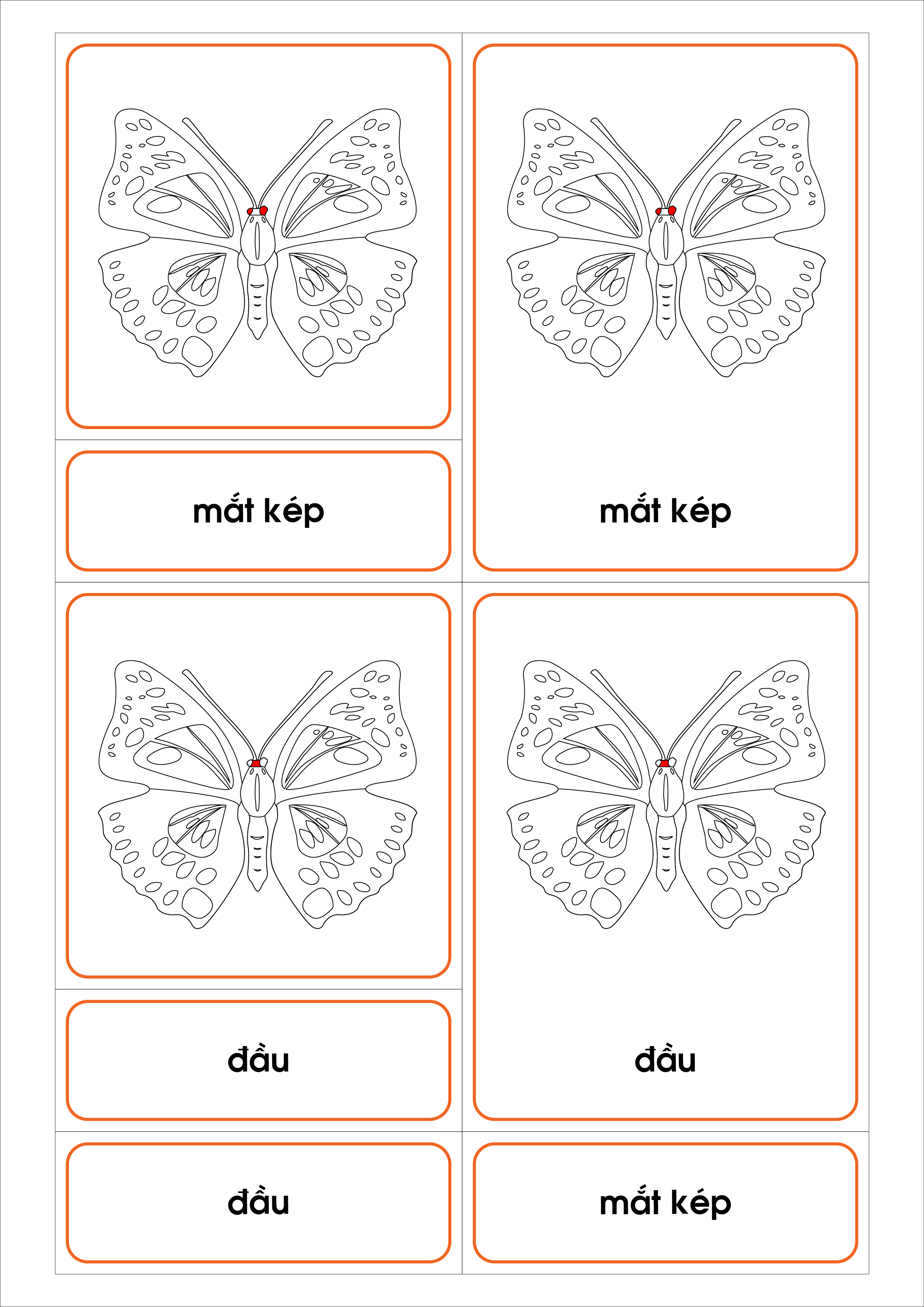 File thiết kế thẻ 3 phần các bộ phận của bướm - Theo tủ động vật không có khay - Tiếng Việt